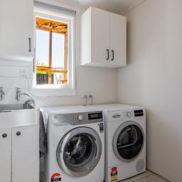 The laundry room keeps daily life organized and easy, and a second toilet is an add bonus.