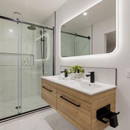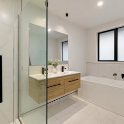 The main bathroom continues the home’s refined aesthetic, showcasing fully tiled shower, double basins, a luxurious bathtub and a separate toilet. Outdoors, the grounds are immaculately landscaped, private and beautifully maintained, with an undercover entertaining area perfect for hosting or relaxing in style.
