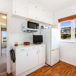 Featuring two generous bedrooms and a practical, easy-flow layout, the home is comfortable to enjoy immediately while still offering plenty of potential to modernise and add value over time. The light-filled lounge captures the harbour outlook and is kept cosy with a wood burner and the added comfort of double glazing, while a heat pump in the hallway helps provide warmth throughout the home.