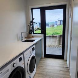 The well-appointed kitchen is the heart of the home, boasting stone benchtops, an induction cooktop, self-cleaning oven, integrated rangehood & dishwasher and a walk-through pantry. Year round comfort is assured with double glazing and a heat pump for efficient heating and cooling.