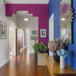 Stepping into the hallway, the proportions are bold with a high stud and clever design elements throughout. The use of colour enhance the feeling of calm, while the sunny, light-filled spaces add to its appeal.