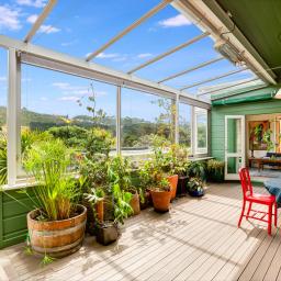The family home offers multiple living areas, including a generous upper-level sunroom featuring a unique fold-down floor system. This innovative space adapts with the seasons-capturing winter sun or transforming to suit changing functions throughout the year.