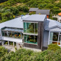 The former home of NZIA Gold Medallist architect Hugh Tennent, this remarkable multi-generational residence represents a thoughtful dialogue between an early Island Bay villa and contemporary New Zealand residential architecture.