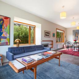 Designed to accommodate two distinct yet connected dwellings, the home provides an elegant, sun-soaked apartment ideal for a grandparent alongside a dynamic and spacious modern family home for a family of four. The result is a warm, flexible living environment that balances privacy with connection.