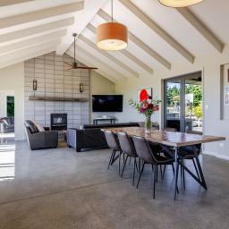Thoughtful design has filled the home with natural light and plenty of rural vistas throughout. Gorgeous high-stud ceilings enhance the sense of grandeur and space whilst still maintaining a warm country family aesthetic. An expansive open plan kitchen and full butler's pantry is as functional as it is elegant. The double-sided wall fire through to a separate lounge creates both ambience (and architectural impact), and year round comfort is easy with a wood burner system supporting both water and underfloor heating, together with a new Fujitsu ducted heat pump/air conditioning unit.