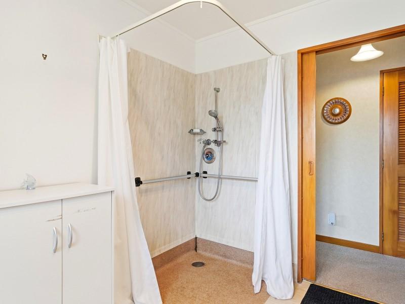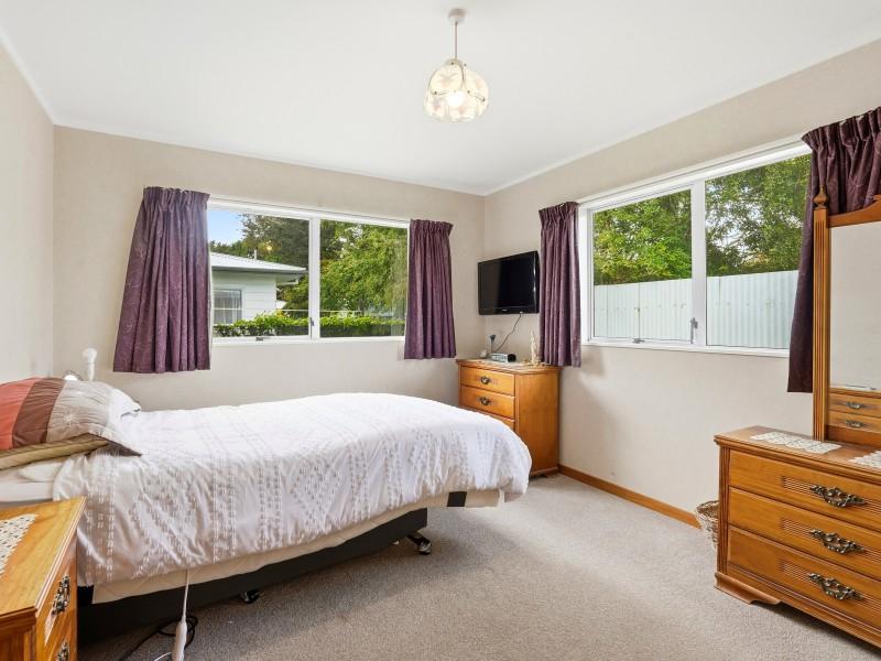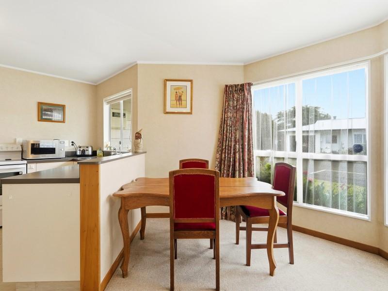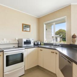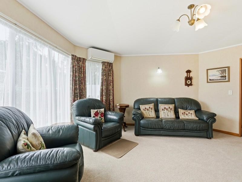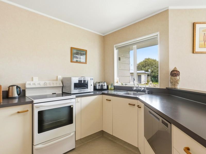 The home features two generous double bedrooms and a light-filled open-plan kitchen and dining area that flows effortlessly into the lounge, all enjoying light filled outlooks. Warm and welcoming year-round, it offers a heat pump, modern decor, and quality carpets throughout. The spacious bathroom is thoughtfully designed with a practical wet-floor shower.