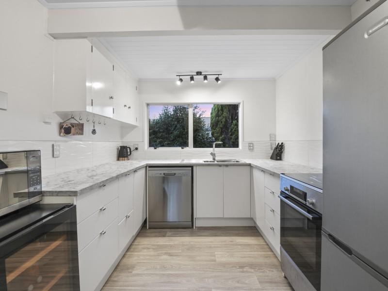 The home offers four bedrooms and two bathrooms, with the upstairs bathroom recently renovated to a modern, warm finish. A second shower and toilet located in the downstairs laundry adds everyday practicality, with the added bonus of the combination washer/dryer currently on site included in the sale. The generous main bedroom provides space for a private parents’ retreat, while the beautifully renovated kitchen sits at the heart of the home, connecting seamlessly with the main living area for easy flow and comfortable living.