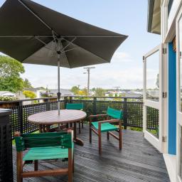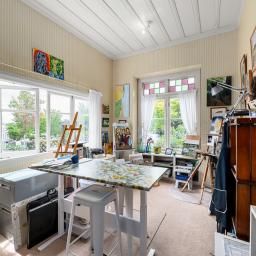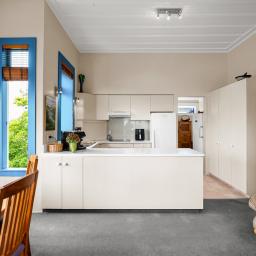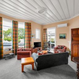 The home itself is steeped in character & history with 3.3meter ceilings & period features throughout. There are four bedrooms plus an office/sunroom, two bathrooms, very spacious separate living, the open plan kitchen & dining are the hub of the home with French doors leading out to an elevated deck perfect for outdoor entertaining. Year-round comfort is provided by two heat pumps, a gas fire & a gas heater.