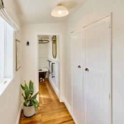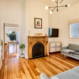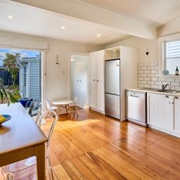 Morning, evening and weekend strolls along Petone foreshore are less than 100m away and the best of Petones' cafes, restaurants and shops, along with the much loved Lighthouse cinema, are less than 200m in the other direction, meaning you can walk everywhere you might need. The spacious eat-in kitchen has french doors to the outdoor deck and garden. The main bedroom has stunning leadlights and a very spacious built-in wardrobe and the 2nd bedroom also has wardrobe and a pull-down ladder for ceiling storage. The bathroom is in keeping with the character and is light, bright and has a classic claw-foot bath for pampering.