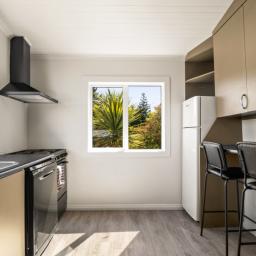 The sunny new kitchen features sleek quality cabinetry and a breakfast bar, perfect for your morning coffee catch ups. The adjoining living area is kept cosy year round with a multifuel burner. The bathroom includes a shower over bath combo, and there’s a separate toilet for convenience.