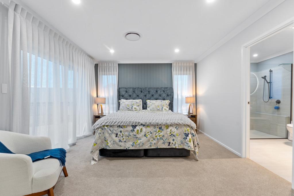 Total of four generous sized bedrooms, made up of three double bedrooms (one with walk-in wardrobe) that are serviced by a luxurious family bathroom, while the master suite (4th Bedroom) provides a peaceful sanctuary with its own north-facing deck access, substantial walk-in wardrobe, and a well-appointed ensuite.