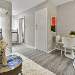 The spacious bedroom provides a peaceful retreat, complete with generous wardrobe space, while the fully renovated bathroom showcases elegant finishes and a clean, modern design.