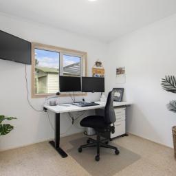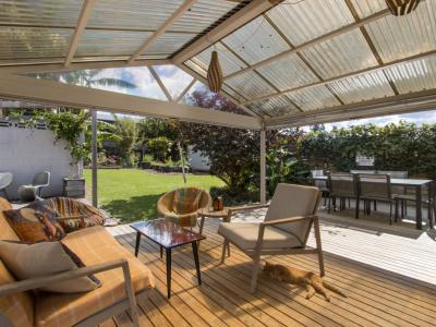 The private backyard is a peaceful retreat, complete with established fruit trees, vegetable gardens & you're very own Greenhouse where you can unwind while listening to the surrounding birdlife.