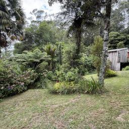 Lot 3 (approx. 9.52ha) is home to a quirky, non-consented two-storey dwelling that has evolved over time and sits comfortably amongst a mix of mature and regenerating native trees.