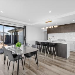 Set on a 500sqm corner section, the light-filled open-plan living, dining, and designer kitchen create the perfect hub for family life and entertaining. The kitchen comes complete with a walk-in pantry and gas cooktop, making meal prep a breeze.
