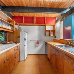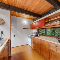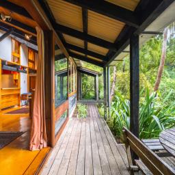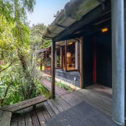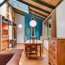 Tucked up a private driveway and surrounded by native bush, this 120sqm architectural retreat was designed in the 1970s by award-winning Gordon Moller of Craig, Craig & Moller. Ahead of its time, the home blurs indoor and outdoor living - expansive windows and a flowing layout bring the bush right inside.