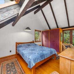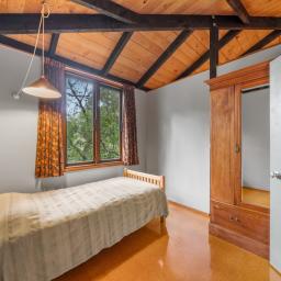 Downstairs, two bedrooms are separated by a partition wall, echoing the feel of camping. A main bathroom and separate laundry complete the level. Upstairs, the mezzanine-style master bedroom has a study nook and casement windows offering bush views and a birds-eye connection to the living area below. Underfloor heating throughout ground floor will ensure you are feeling cosy and warm all year round.