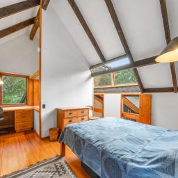 • Mezzanine master bedroom with study nook and casement windows