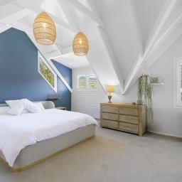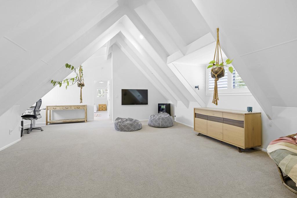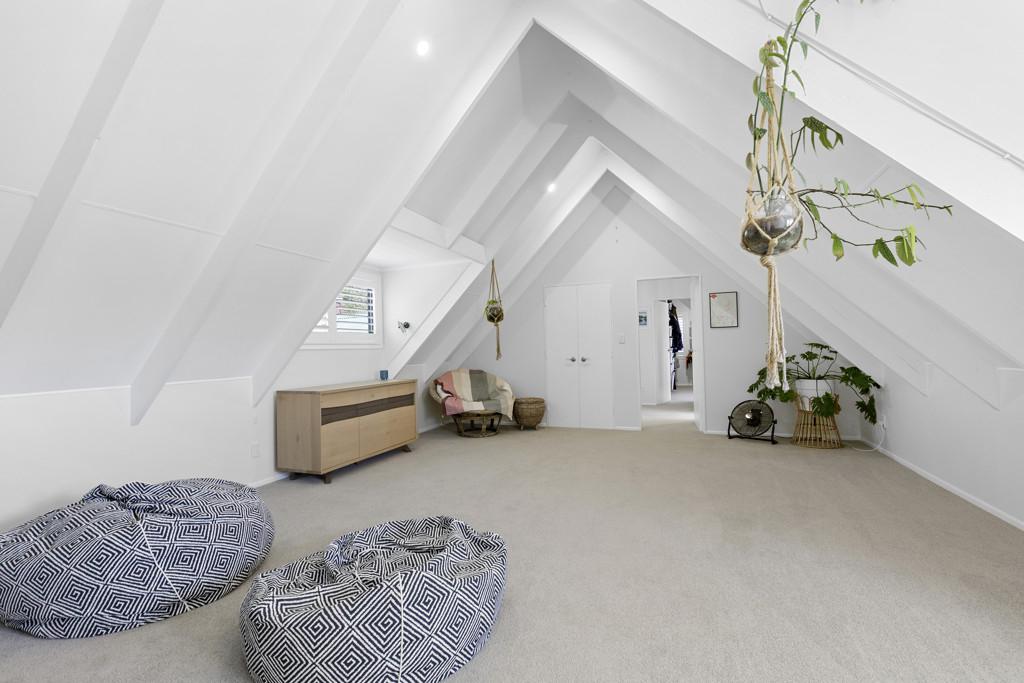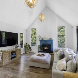 Spread over a generous 315m2 footprint, the home offers five bedrooms (4 upstairs one down), three bathrooms(inc one ensuite) and two separate living areas (one on each level), There's a spacious modern kitchen with high end appliances & walk-in pantry, open plan generous dining that flows through to large living area with vaulted ceiling and out to north facing decking and fire pit - ideal for hosting family and friends.