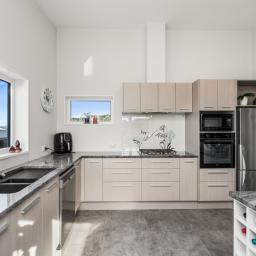 Completed in 2018, this residence was crafted to harmonise with its elevated site, maximizing the coastal views and ensuring the interiors are bathed in natural light. The home's modern aesthetic is underpinned by a commitment to efficiency; built to passive house principles with high levels of insulation, the residence features uPVC joinery for superior thermal performance and an HRV system to encourage a healthy, dry environment throughout the seasons.