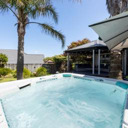 The backyard has been thoughtfully designed to create a private, resort-style setting. Premium shade systems frame the outdoor entertaining areas, while the impressive 9-seater HotSpring spa offers the perfect place to relax at the end of the day or gather with friends on the weekend.