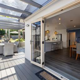 Layered decking, established planting and well-planned outdoor zones provide both privacy and atmosphere - a space designed to be enjoyed year-round.