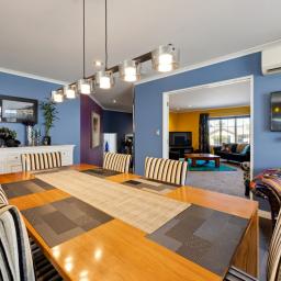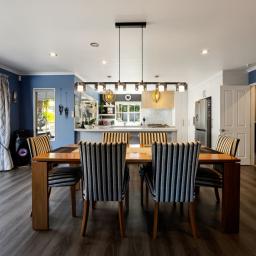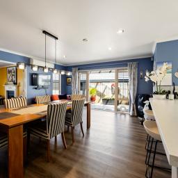 At the heart of the home sits a stylish, well-appointed kitchen with quality appliances and generous bench space. It flows seamlessly through to the dining area and outdoor living, making everyday family life and hosting guests equally effortless.