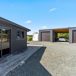 Excellent infrastructure includes a 90m2 timber pole shed, a cool room set up for home kill, separate laundry/storage shed, greenhouse with raised beds, garden shed, fruit trees and three water tanks.