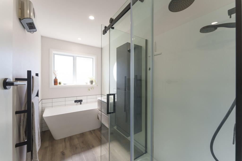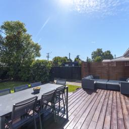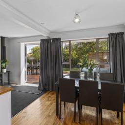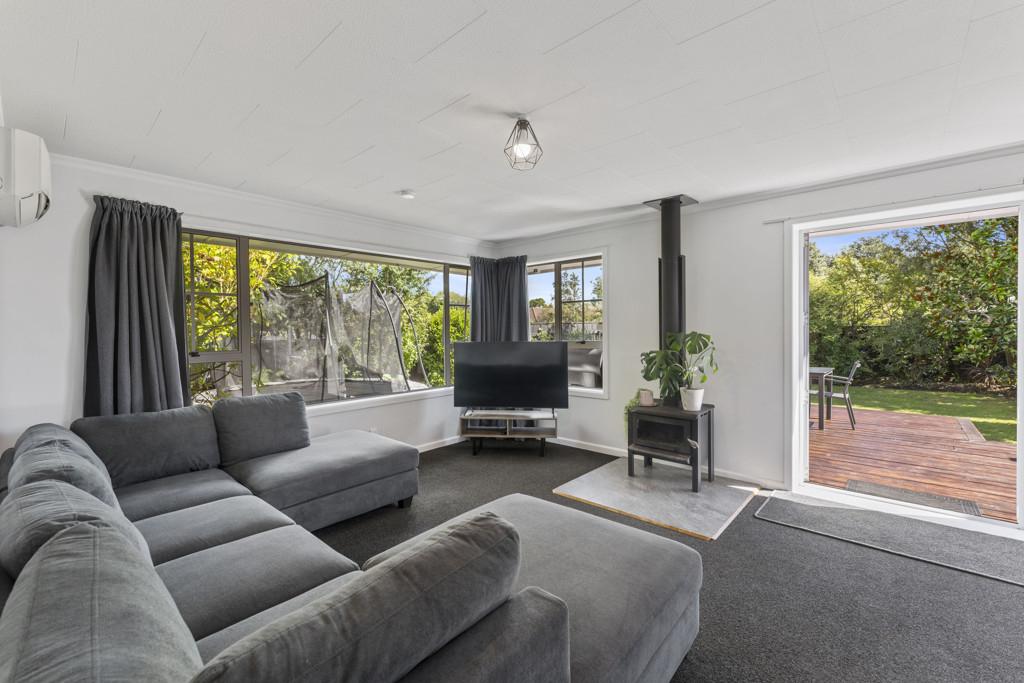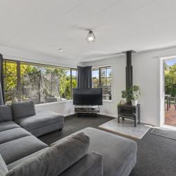 The light-filled living area flows effortlessly to a beautiful outdoor deck, creating the perfect space for entertaining, relaxing, or simply enjoying the sunshine. A cozy log burner and heat pump ensure year-round comfort, keeping the home warm through winter and cool in summer.