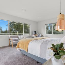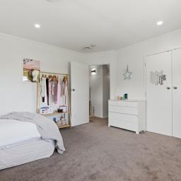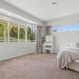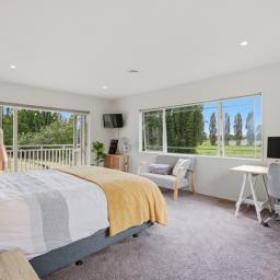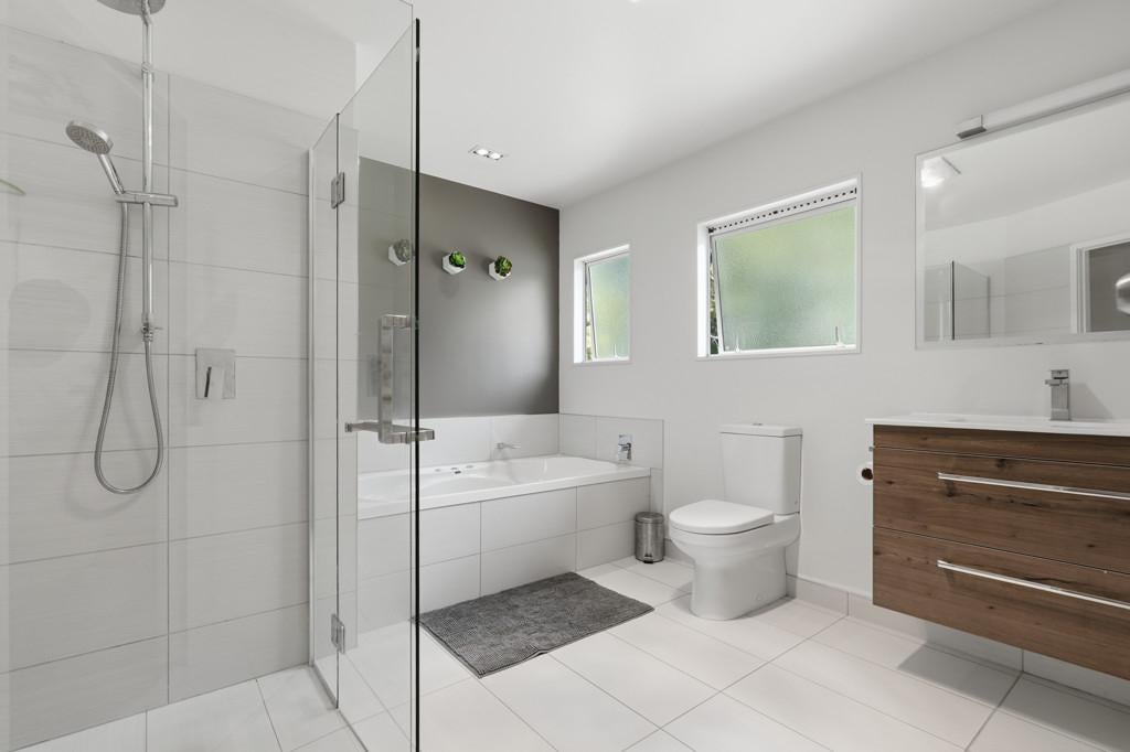 The master suite features a walk-in robe, ensuite, and direct access to the verandah. The family bathroom is equally spacious and well appointed.