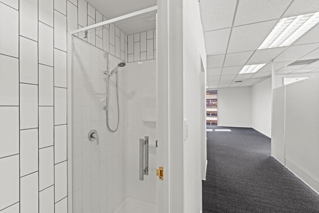 Amenities include designer kitchen and bathrooms with separate shower. Plenty of natural light with windows on three sides.