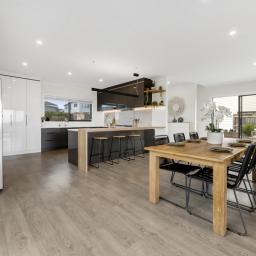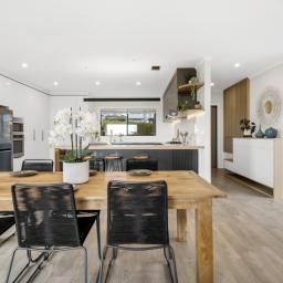 Step inside and you immediately feel the difference. High ceilings and natural light create a sense of openness, while the main living area forms a warm and inviting heart of the home. The kitchen connects beautifully with the living and dining spaces, flowing out to a north facing deck that enjoys sun and an elevated green outlook. It is a setting that feels calm, private and ideal for both everyday living and hosting family and friends.