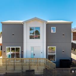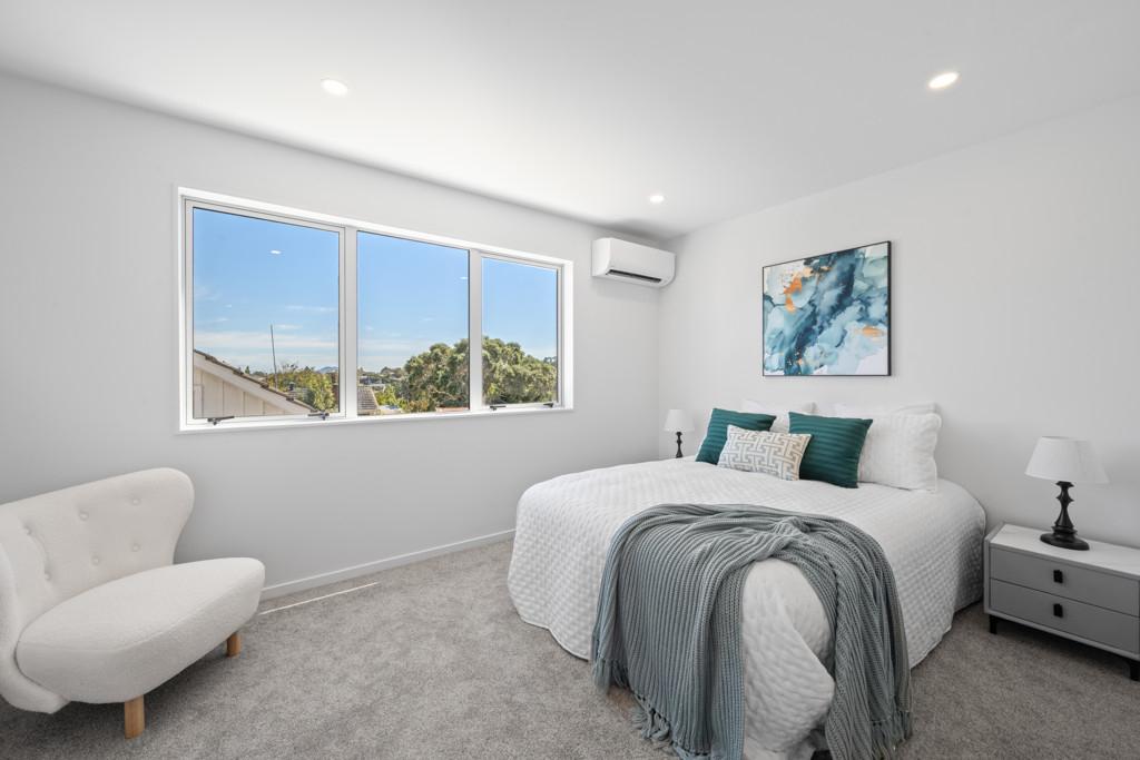 Upstairs offers four spacious bedrooms, including a beautiful master suite with ensuite and walk-in wardrobe. From this level, you'll be captivated by stunning Sky Tower and Rangitoto views, a rare bonus that elevates everyday living.