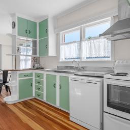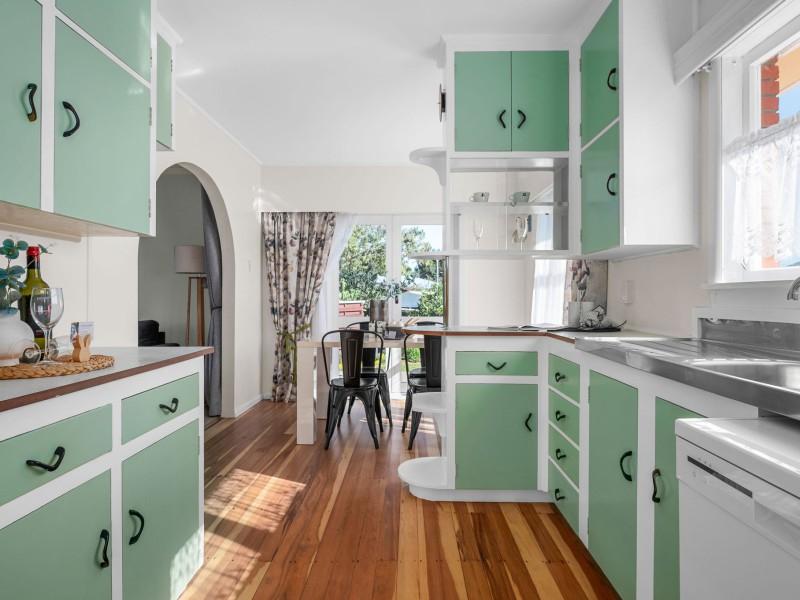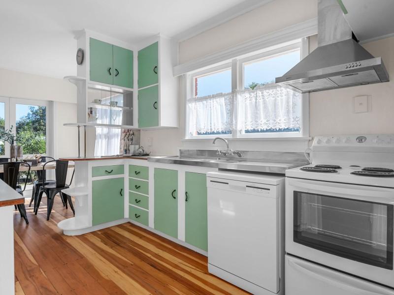 The kitchen and dining area retain a charming retro feel, providing a practical space for everyday living with plenty of scope for modern updates over time. For buyers with an eye for potential, this is a home where simple improvements could easily add further value.