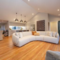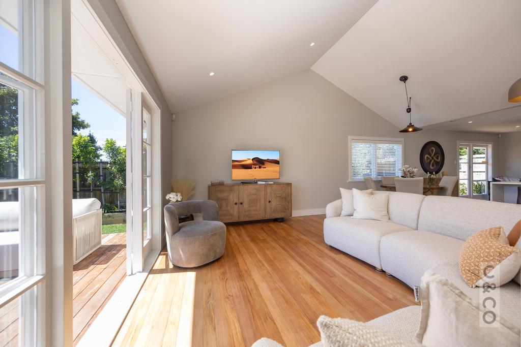 Ceiling heights rise to 3.6 metres at the peak through the kitchen, dining and living, with 3.2 metres in the master bedroom - creating volume and light that immediately sets this home apart.