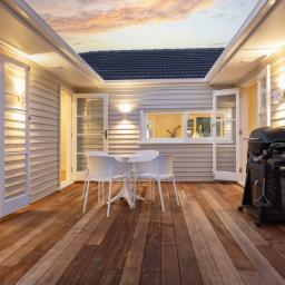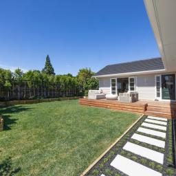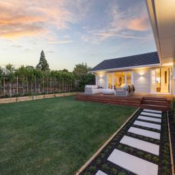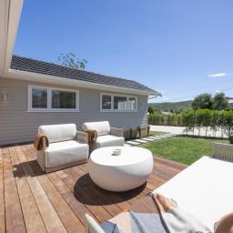 The landscaping, designed by international award-winning Jules Moore, creates privacy and structure with olive, camellia, ficus tuffy and bubble trees. Established fruit trees - feijoa, mandarin, lemon, lime, blueberry, apple, grapefruit and olives - complete the picture.