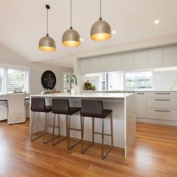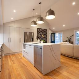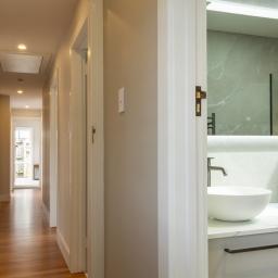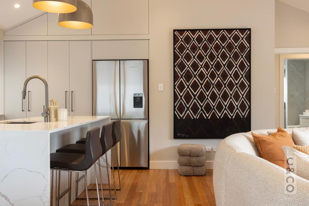 Custom BML cabinetry defines the new kitchen, wardrobe fit outs, laundry and bathroom vanities, finished with stone benchtops and brand-new Fisher & Paykel appliances.