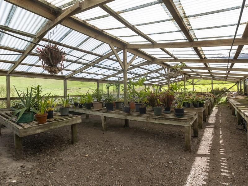 Two substantial shade houses (approximately 320m² combined), originally used as an orchid nursery, provide excellent infrastructure for growing vegetables, propagation, or other horticultural pursuits. One is currently utilised for storage. A separate powered garage/workshop with workbench adds further versatility.