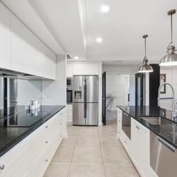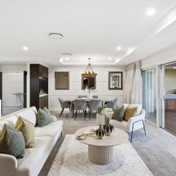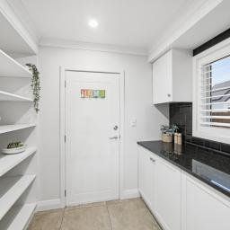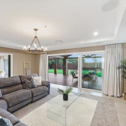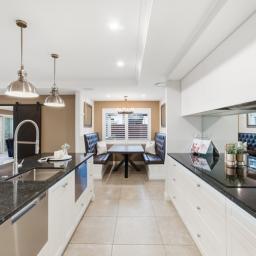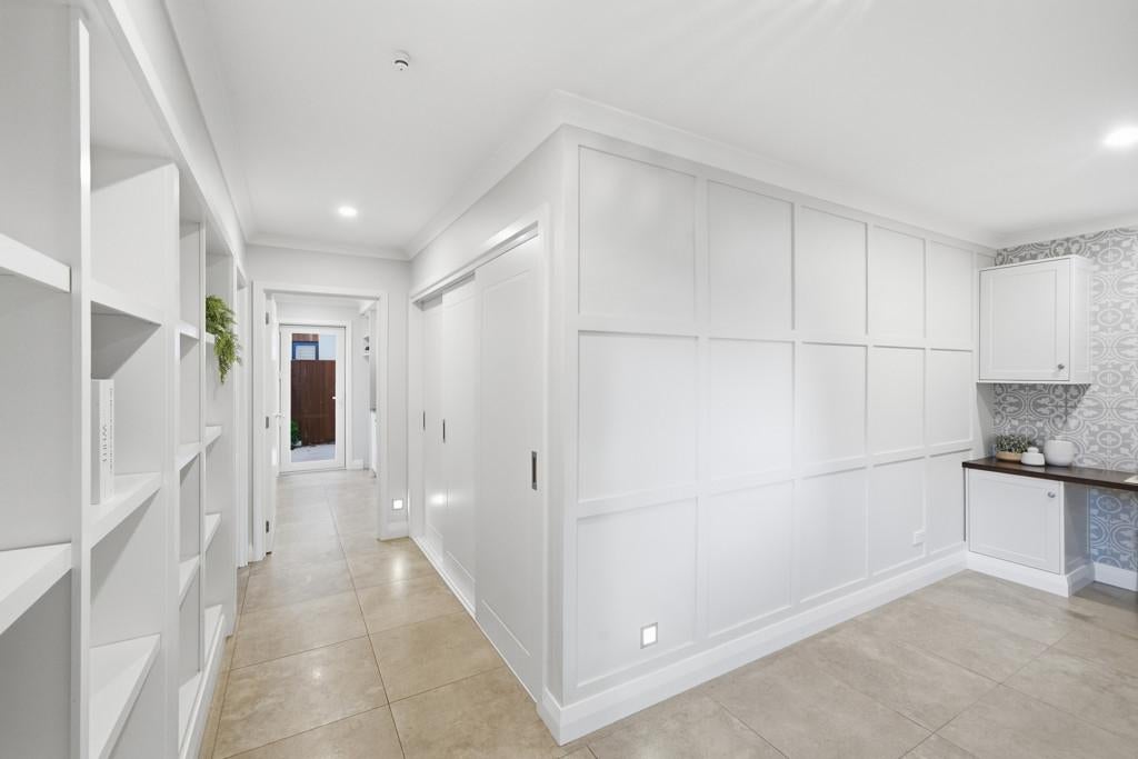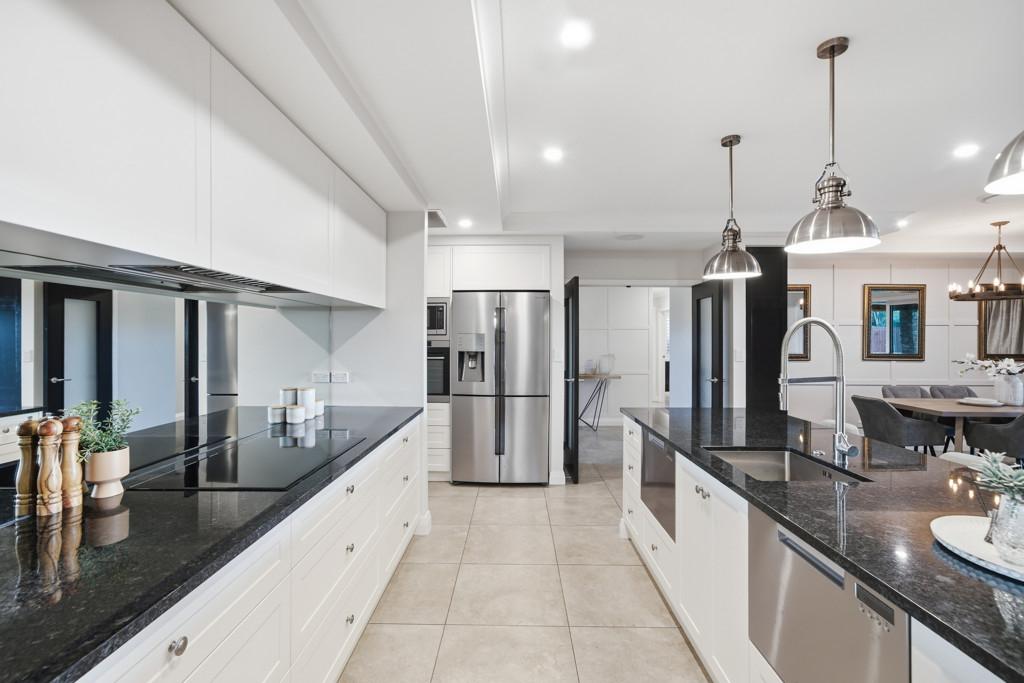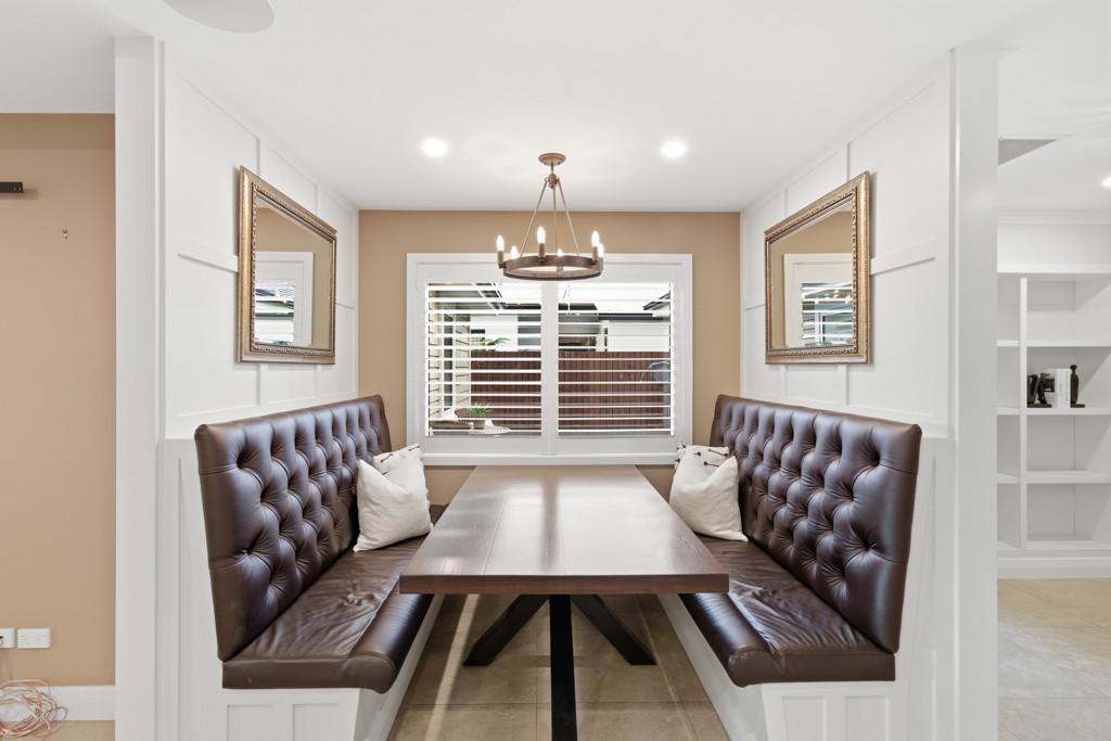 The kitchen is a genuine centrepiece - premium appliances, a fully equipped butler's pantry, and an integrated dining booth make it equally suited to quiet mornings and serious entertaining. Barn doors allow the open-plan living and dining area to flow freely or close off from the formal lounge, giving the home real flexibility for everyday life and larger gatherings alike.