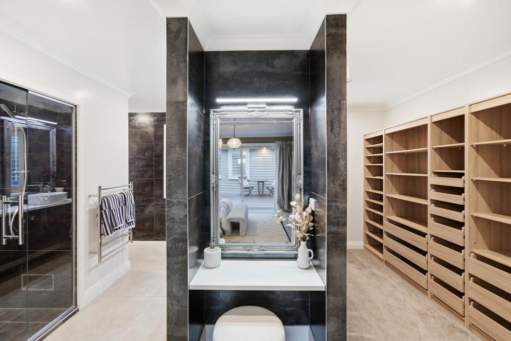 The 919m² grounds are fully irrigated and low-maintenance, with a triple-car garage with drive-through door and separate storage shed rounding out a property that has been thought through to the last detail.