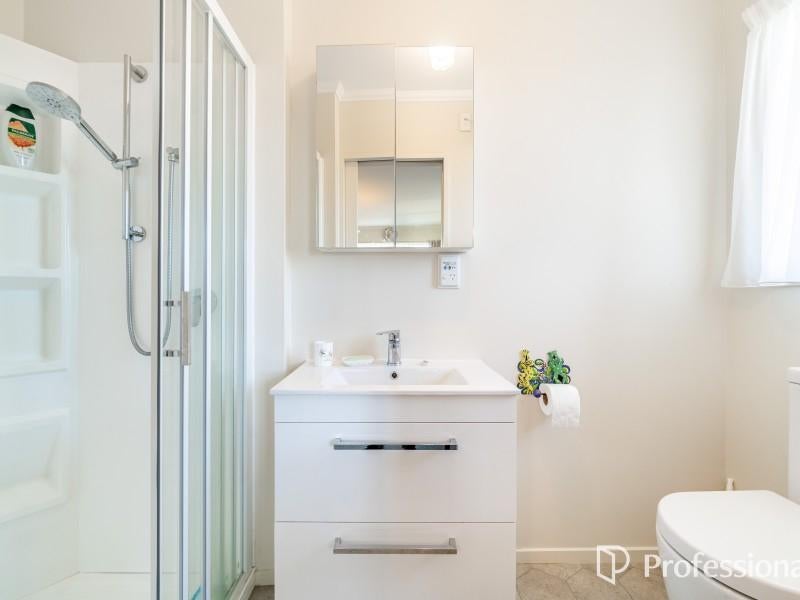 A double garage with internal access adds convenience, while the low-maintenance exterior featuring Hinuera stone exterior and a tile roof ensures lasting appeal. The bush-clad rear section blends beautifully into its natural surroundings, creating a private backdrop that completes the picture.
