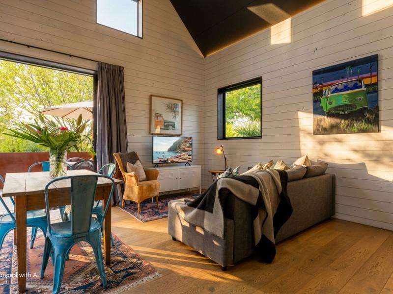 House of the Year Award–winning Black Hut in the heart of the Avon Loop. Standalone, beautifully crafted and designed for comfort, this eco-focused home features charred larch cladding with a smart thermal design that keeps it warm, quiet, and energy-efficient year-round. Situated on a freehold title.
