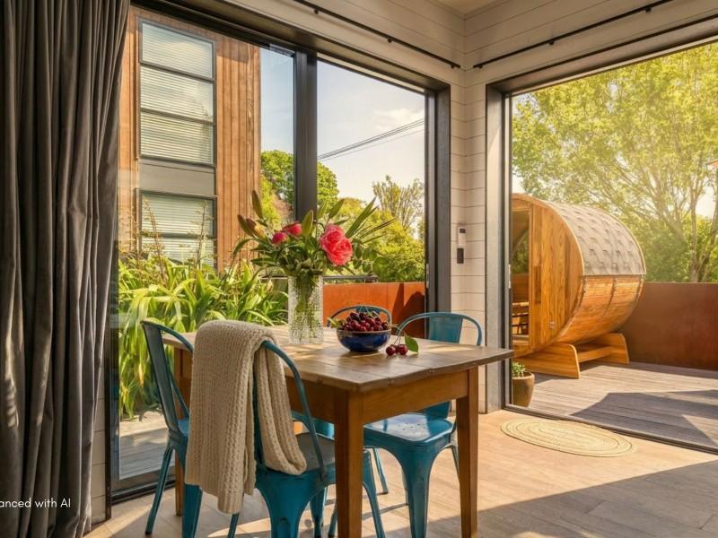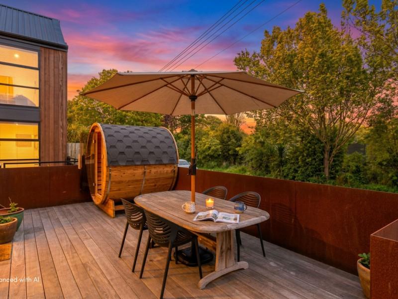 Inside, the clever layout delivers open-plan living that flows to a sunny north-facing, elevated deck. A light-filled master bedroom opens to the private garden, and a versatile loft is a perfect second bedroom, studio, or home office.
