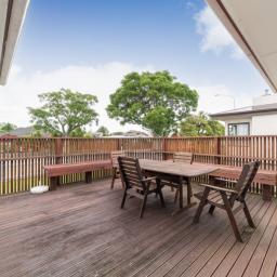 Doors from the lounge open onto a sunny deck, providing easy indoor-outdoor flow and a great space for relaxing or entertaining.