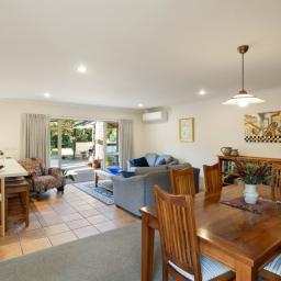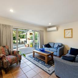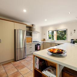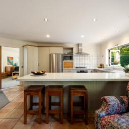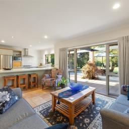 Spanning 243sqm (approx.) floor area, the 'social zone' features a light-filled open plan kitchen, dining and casual living space. Gas cooking, a dishwasher and excellent cupboard space make entertaining a pleasure, while underfloor heating in the kitchen and bathrooms adds a touch of everyday luxury. Large doors open seamlessly to the outdoor BBQ area, courtyard and sweeping lawns – an idyllic backdrop for gatherings, children at play or quiet evenings under the stars.