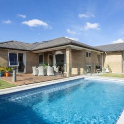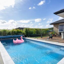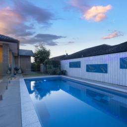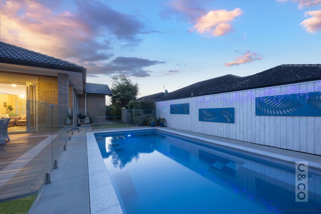 Outdoors is where this home truly shines. The heated saltwater pool (installed 2021) is self-chlorinating and complete with a solar cover for year-round enjoyment. Vitex timber decking, upgraded in 2018, wraps the entertaining zone, while stainless steel LED exterior lighting adds a polished finish in the evenings.
