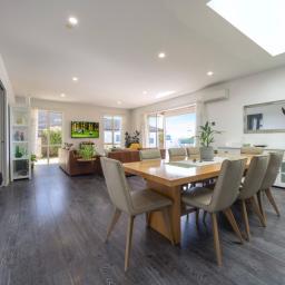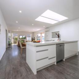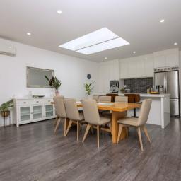 From the moment you step inside, the sense of space and natural light is immediate. Twin electric Velux skylights flood the open-plan kitchen and dining with sunshine, while clean lines and neutral finishes create a calm, contemporary feel throughout.