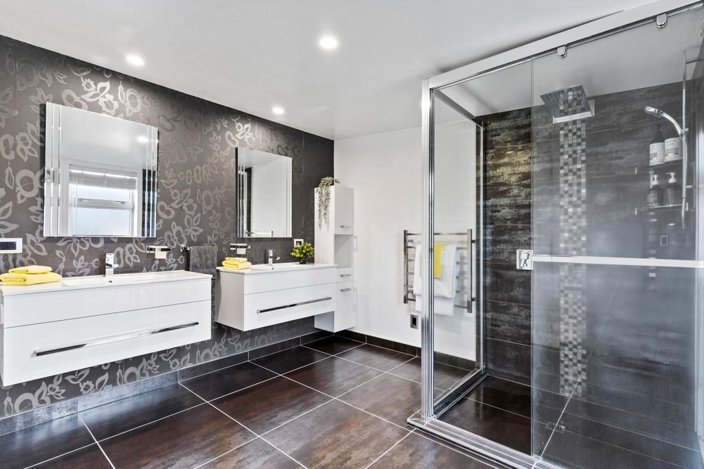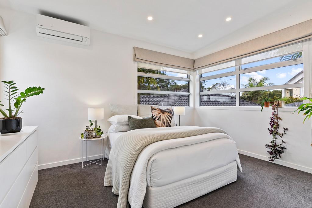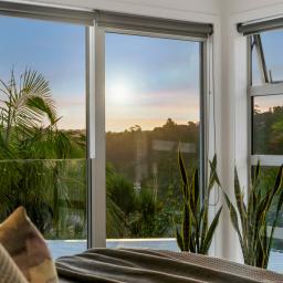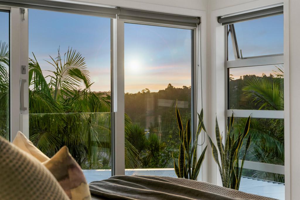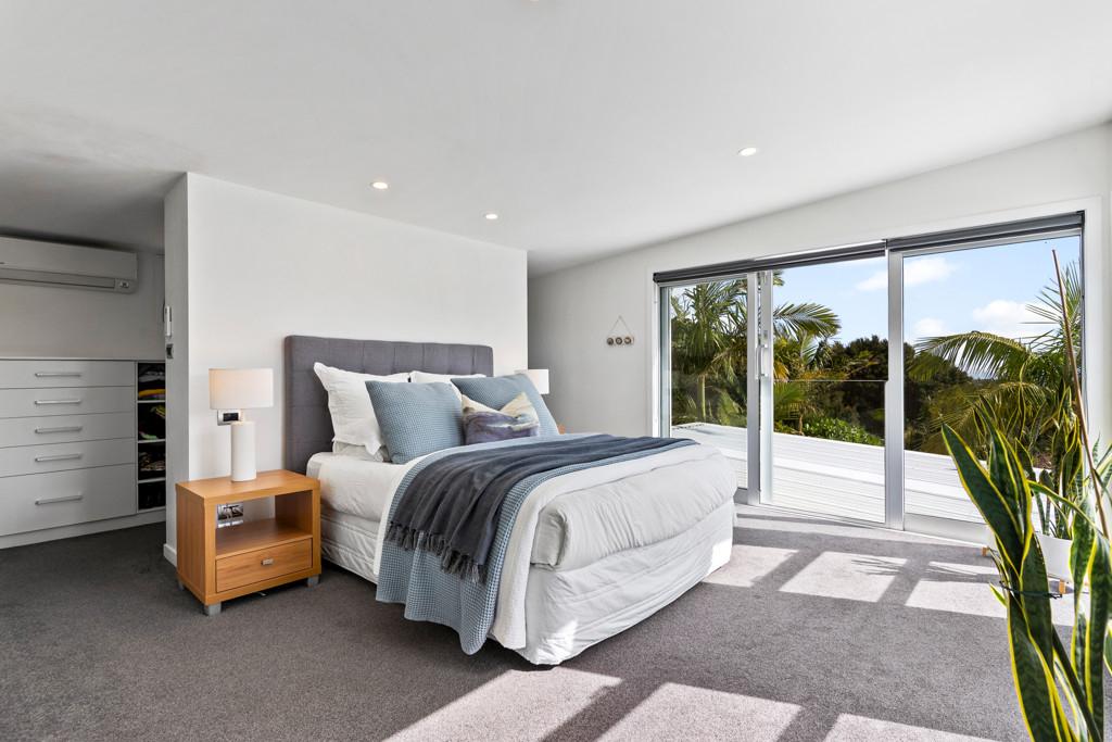 Accommodation is arranged across the upper and middle levels, including a private primary suite with walk-in wardrobe and ensuite enjoying beautiful sunsets with sea & Waitakere Ranges views, two additional family bedrooms & bathroom, plus a fourth bedroom beside the foyer ideal for guests or work-from-home use.