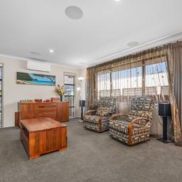 Sun-filled open-plan living revolves around a central kitchen with rich granite benchtops, a breakfast bar and space for a double plumbed fridge. Imagine long Sunday brunches or midweek dinners that feel like weekends. Smart lighting sets the mood at a tap or swipe, while a separate lounge is perfect for cosy movie nights or relaxed entertaining.
