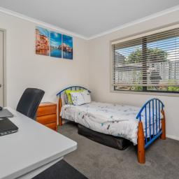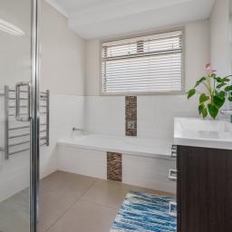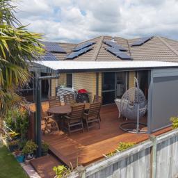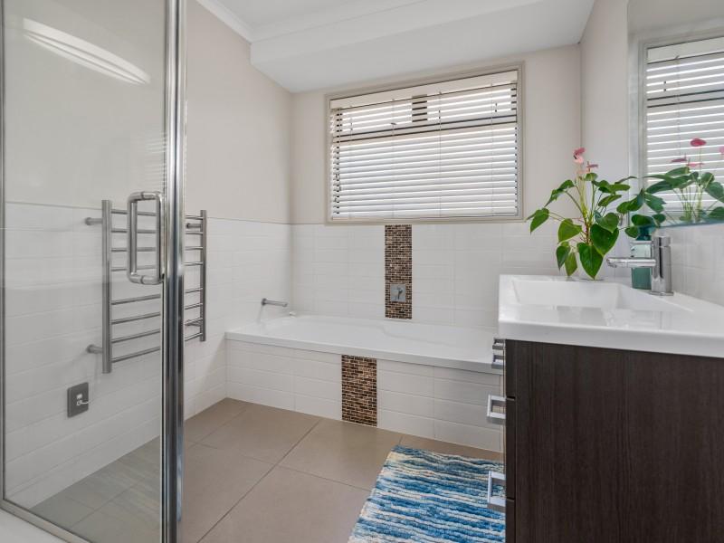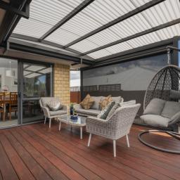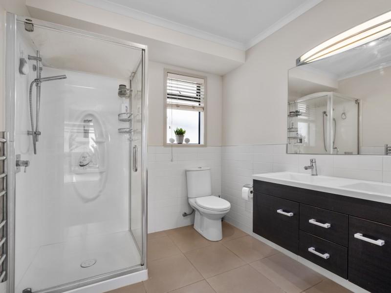 Outside, a Purple Heart timber deck with covered pergola invites year-round entertaining, and terraced gardens offer space to grow your own fruit and veggies. A small easy care lawn completes the scene for family play or a furry friend.